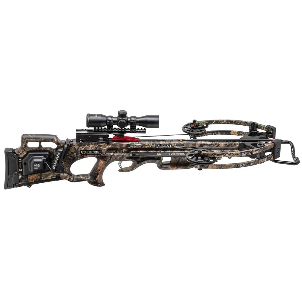 The Turbo M1 is the fastest, lightest and narrowest crossbow in TenPoint’s line of Turbo crossbows. The Turbo M1 utilizes an assembly of VX-5 inverted cams which elongate the power-stroke and increase rotation. This advanced series of cams is capable of launching bolts at a blistering 380 feet per second with pin-point accuracy. This Turbo M1 is equipped with TenPoint’s own ACUdraw PRO cocking device. This device integrates with the stock and allows the user to cock the crossbow silently with a mere 8.5 lbs of force. This cocking system eliminates the possibility of over-cranking and is 43% faster than the previous ACUdraw models.
