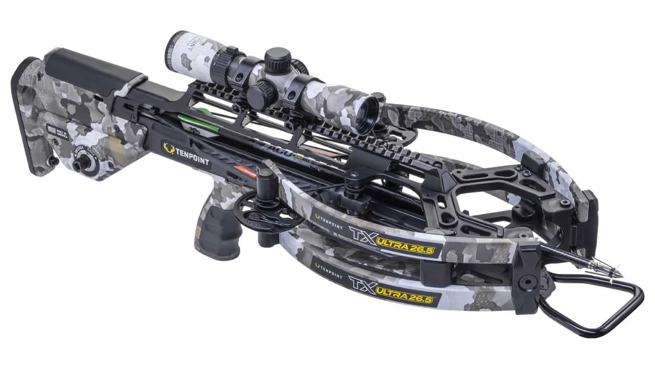 The TenPoint TX Ultra 26.5 RangeMaster 100 Crossbow is a cutting-edge precision crossbow package that combines the ultra-compact TX Ultra platform with TenPoint's most advanced rangefinding optic for a complete, technology-forward hunting solution. The RangeMaster 100 scope delivers instant, precise distance data and automatic holdover points directly in the shooter's sight picture, eliminating guesswork and streamlining the shot process for fast, confident engagements at any range. Built around TenPoint's revolutionary ACUslide silent cocking and safe de-cocking system, this crossbow delivers a smooth, consistent draw cycle while eliminating the noise associated with traditional cocking methods. The MAXX Vektra cam system drives exceptional arrow speeds from one of TenPoint's most compact and maneuverable platforms, making it an ideal choice for treestand, blind, and spot-and-stalk hunting applications.