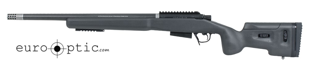 Defying traditional tactical rifles, this 6.5 Creedmoor Christensen Arms TFM Carbon rifle features a 20" barrel with 1:8" twist, muzzle brake, timney trigger, removable drop mag box, mini M16 style extractor, integral picatinny rail, tactical bolt knob, natural graphite stock, and a 1/2 MOA guarantee. Includes soft case.