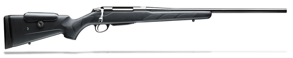 The Tikka T3 Lite Adjustable .204 Ruger rifle features an adjustable cheekpiece, adjustable length of pull, and a lightweight, solid stock made of glass fiber reinforced copolymer polypropylene with a firm grip.