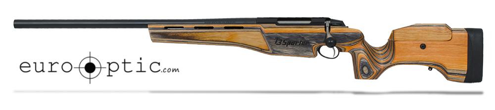 This left-hand Tikka T3 Sporter 6.5x55 Swede rifle was developed to be used in both competitions and hunting. For competitions, the Tikka T3 Sporter features stock adjustments, including an adjustable cheekpiece and an adjustable recoil pad, and various rail placements allowing biathlon style carry. The cheekpiece also features an integrated, adjustable memory position. With an orange gray laminated stock and matte blued metal parts, this firearm has a very unique look.