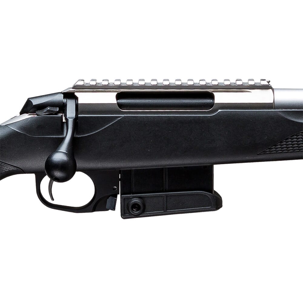 Other notable features of the Tikka T3x CTR Rifle include an ultra-durable polymer stock. The stock’s pistol grip is interchangeable for comfortable hand placement, and places the shooter’s finger in the optimal position relative to the trigger. The stock also features an integrated cheek rest to ensure proper alignment between the shooter’s eye and a mounted optic. In addition, the Tikka T3x CTR Rifle comes standard with a detachable 10-round magazine and a 1913 Picatinny optics rail.