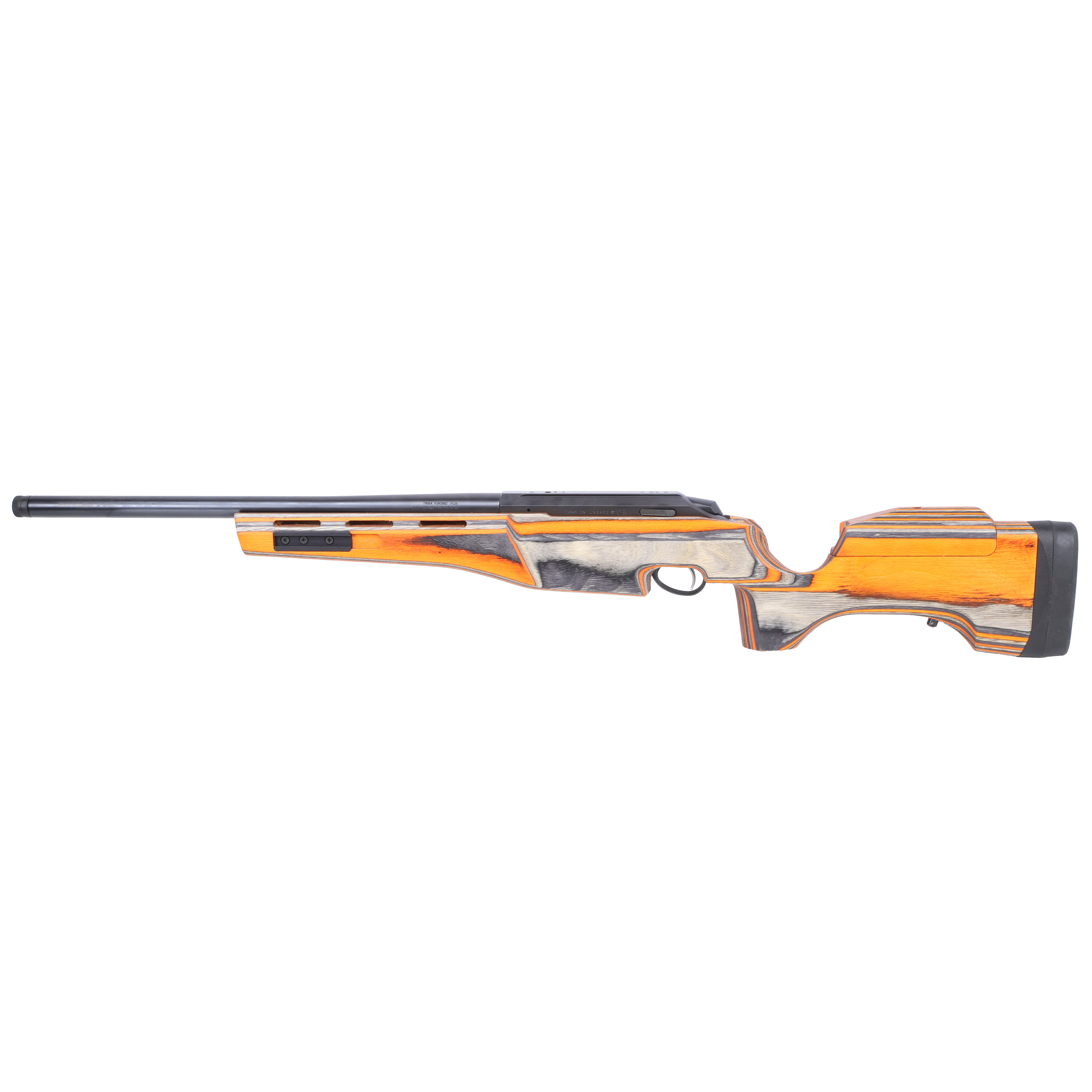 The Tikka T3X Sporter is a precision rifle designed for shooters who demand accuracy and reliability. Chambered in .308 WIN, this rifle is perfect for precision shooting, offering a perfect balance of power and precision. The T3X Sporter is crafted with a blued steel finish, providing enhanced durability and resistance to corrosion, ensuring a long-lasting performance in various shooting conditions. The rifle features a 20-inch barrel with a 1:10 twist rate, ensuring optimal bullet stability and accuracy with every shot. The adjustable cheek piece and oiled orange laminate stock not only provide a custom fit for shooters of all sizes, but also add a touch of aesthetic appeal to this high-performance rifle. With a 5-round magazine capacity, the Tikka T3X Sporter is designed for reliable shooting performance, making it a top choice for precision shooters who demand the best in accuracy and durability.