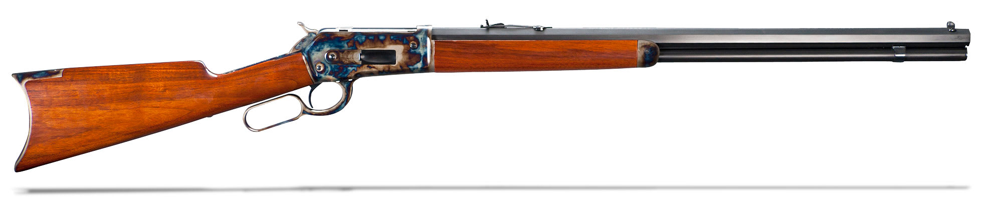 A reproduction of the original Winchester Model 1886, the .45-90 Turnbull 1886 rifle features rust blued 26" octagonal barrel, rust blued magazine, charcoal blued small parts, field grade walnut stock with crescent butt plate, flat top sights with brass bead, and period-correct color case hardening on the receiver, hammer, lever, forend cap, and butt plate.
