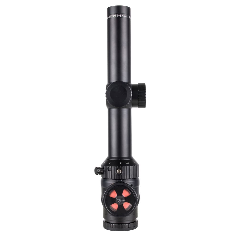 Available with either the BDC Hunter Holds reticle featuring a green dot or the BAC® Red Triangle Post reticle, both Second Focal Plane models deliver fast target acquisition and intuitive aiming. Housed in a rugged 30mm aircraft-grade aluminum tube and finished in satin black, the AccuPoint 1-8x24 is waterproof, shock-tested, and built to hold zero under hard use. Low capped adjusters protect your zero in the field, making this scope an ideal choice for hunters and shooters who value durability, clarity, and battery-free illumination.
