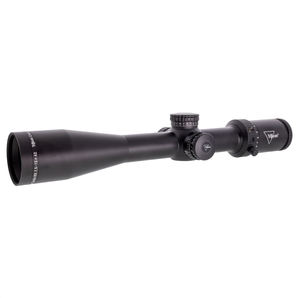 Available in versatile 2.5-10x56, 2.5-15x42, 2.5-15x56, and 4-16x50 configurations, each Second Focal Plane Credo HX scope is engineered to hold zero and perform reliably through extreme temperature swings, recoil, vibration, and hard use. Red and green LED illumination ensures confident aiming in any light, while exposed elevation adjusters with return-to-zero make dialing fast, repeatable, and tool-free. Built around a durable 30mm tube and tested to Trijicon’s stringent "Science of Brilliant®" standards, the Credo HX is a dependable companion for serious hunters who refuse to compromise.