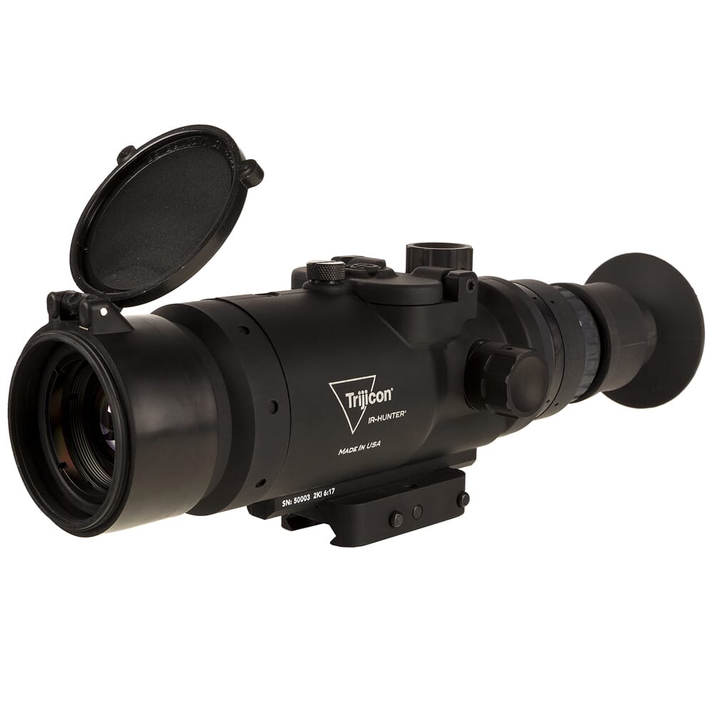 Trijicon’s IR-Hunter delivers powerful thermal imaging in a compact, easy to use package. The core of the system is the advanced 12 micron thermal image sensor that provides superior image quality in virtually any lighting condition, and the 640x480 resolution features 4 times as many pixels when compared to the competing 320 systems. The IR-Hunter displays sources of heat on three different pallets: black hot, white hot, and edge detect. Black hot displays heat signatures as black silhouettes over a predominantly white background, white hot shows heat sources as white silhouettes over a dark background, and edge detect casts an outline around sources of heat. In addition, the IR-Hunter features five user-selectable reticle choices: an MRAD based reticle, an MOA based reticle and bullet drop compensation reticles optimized for .223, .308, and .300 Blackout.
