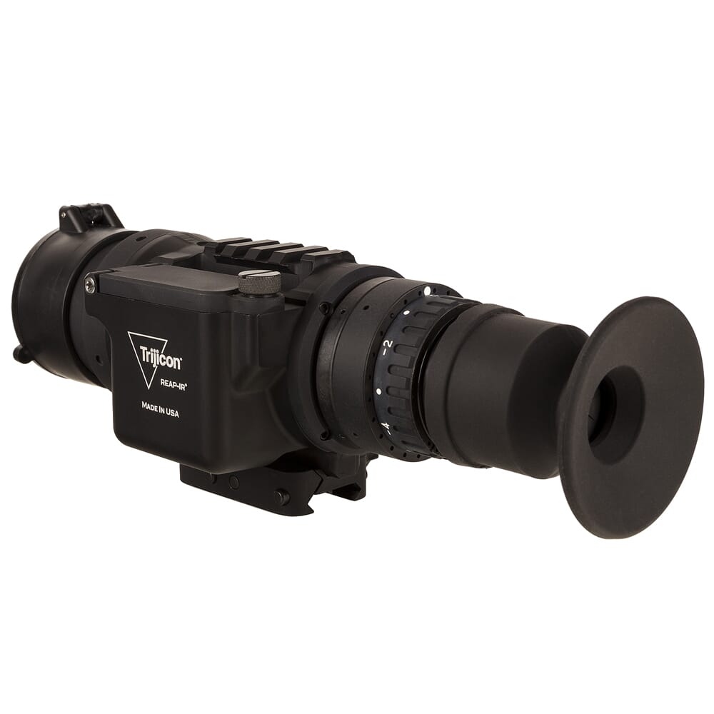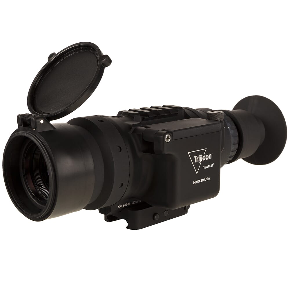 Trijicon’s REAP-IR delivers powerful thermal imaging in a compact, easy to use package. The core of the system is the advanced 12 micron thermal image sensor that provides superior image quality in virtually any lighting condition, and the 640x480 resolution features 4 times as many pixels when compared to the competing 320 systems. The REAP-IR displays sources of heat on three different pallets: black hot, white hot, and edge detect. Black hot displays heat signatures as black silhouettes over a predominantly white background, white hot shows heat sources as white silhouettes over a dark background, and edge detect casts an outline around sources of heat. In addition, the REAP-IR features five user-selectable reticle choices: an MRAD based reticle, an MOA based reticle and bullet drop compensation reticles optimized for .223, .308, and .300 Blackout.