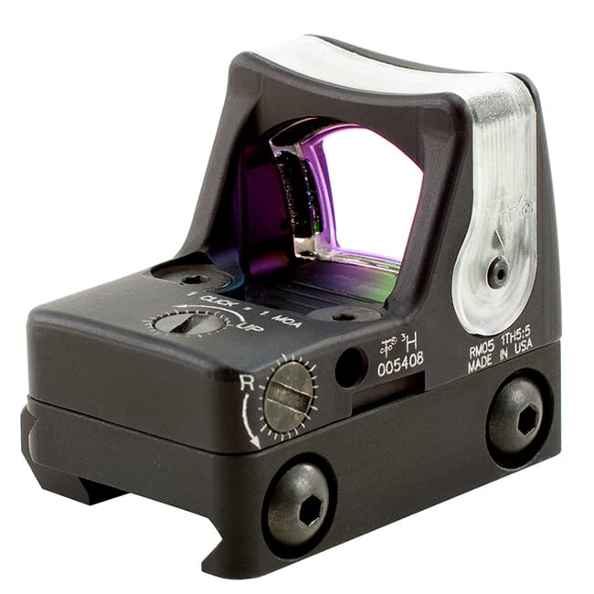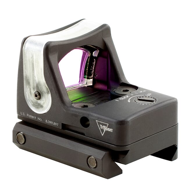 The Trijicon RMR Dual Illuminated uses a combination of fiber optics and tritium for recital illumination. In a normal daylight environment, the fiber optics absorbs ambient light and automatically adjusts the brightness of the reticle. In an environment with little to no light, tritium provides reticle illumination. This reflex sight doesn’t require batteries and has a reticle size of 9.0 MOA.