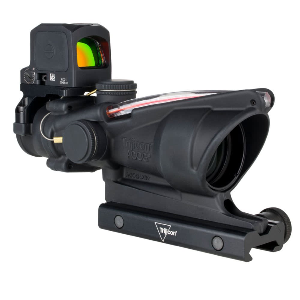 The Trijicon ACOG® 4x32 with RCR® Red Dot Sight combo is a battle-proven optic system designed for rapid target engagement, uncompromising durability, and combat-level reliability. Built around the legendary ACOG platform, this fixed 4x riflescope features a dual-illuminated red chevron .223 BDC reticle powered by tritium and fiber optics-eliminating the need for batteries while automatically adjusting to ambient light. The Bindon Aiming Concept® (BAC) allows for fast, both-eyes-open shooting, delivering exceptional situational awareness and speed in dynamic environments.