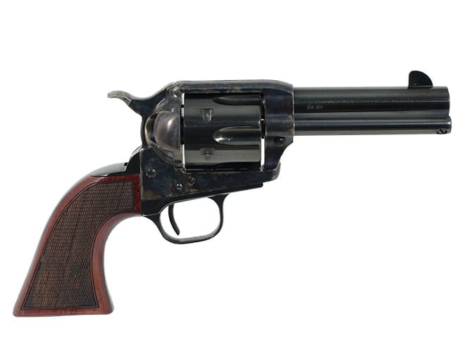 You can depend on it! Lightning fast and reliable, shot after shot-in the world of single action revolvers Uberti’s new hand-tuned Cattleman model is truly "the boss," or El Patron, as the Vaqueros of the old west would say. The gunsmiths at Uberti have fitted each El Patrón with high-grade, US-manufactured Wolff springs and each revolver has been carefully tested and certified for flawless fit and function. The result is a single-action that is reliable, lighter and faster with a smooth-tuned action. The new El Patrón is available in 6 new factory custom-tuned models with color case-hardened or stainless steel frames, numbered cylinders, steel backstraps and trigger guards, new checkered walnut grips and wide, easy-view front and rear sights.