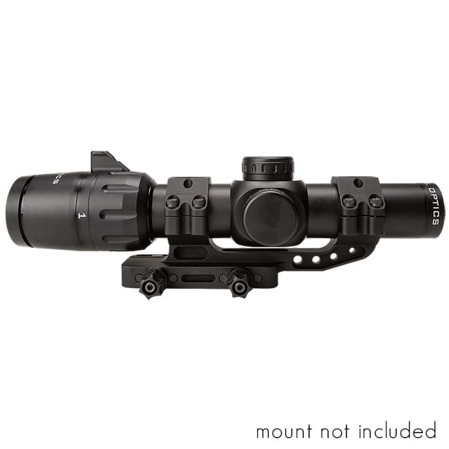 US Optic’s SVS 1-6x24 Riflescope is a CQB riflescope with an illuminated MIL Scale Reticle. The 2 MOA red dot has 10 levels of illumination including 3 low levels that are night vision compatible and has a battery life of up to 500 hours. The riflescope utilizes a rugged 34mm aluminum tube and has capped adjustment turrets with 2/10 Mil adjustments. This scope is bundled with a D-LOC-M4 Cantilever Scope Mount with a one piece precision machined aluminum body and D-LOC system technology.