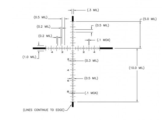 This US Optics LR17 3.2-17x44 riflescope with MPR MIL reticle features a turret parallax left side focus, low profile rapid focus eyepiece, matte black type III hard anodizing, 12 position digital illumination, US#1 .1 mil windage knob, and a EREK .1 mil elevation knob with 110 clicks per revolution.