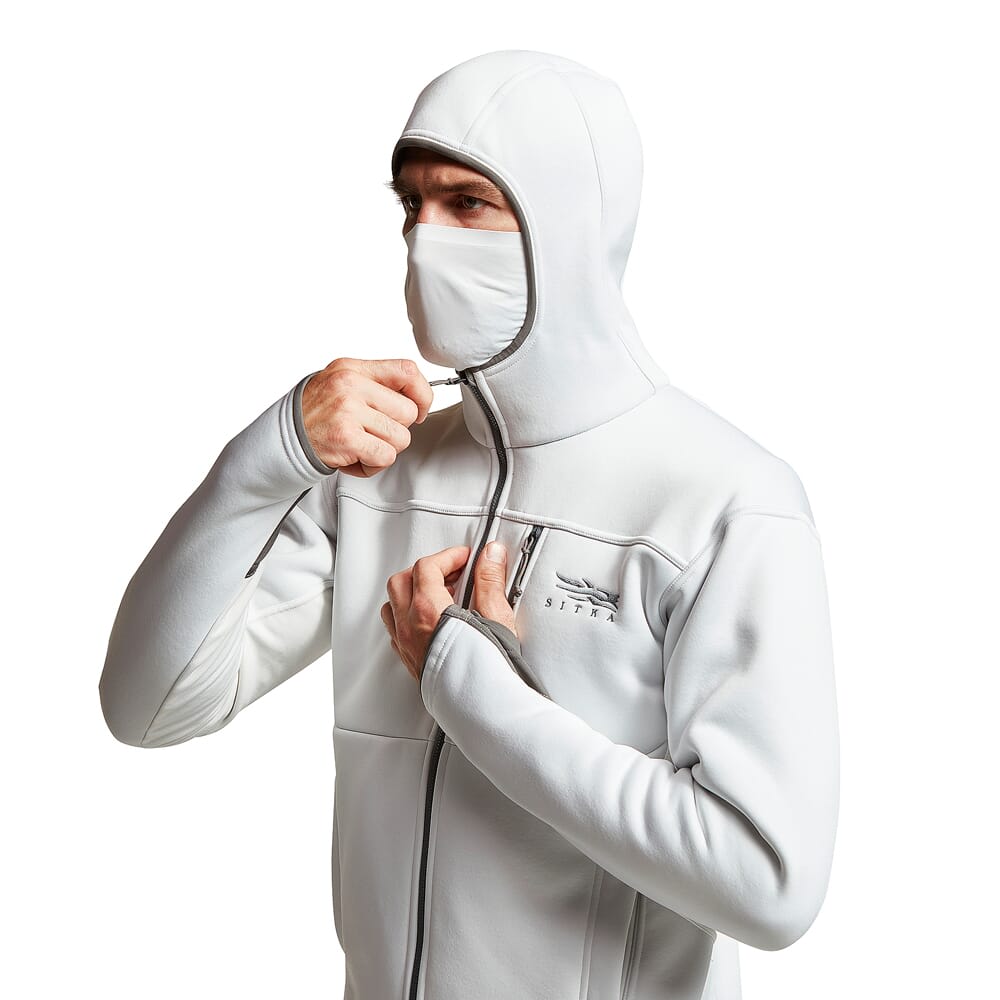 Sitka combines comfort, performance, and versatility with the Traverse Hoody. It can be worn as an outer-layer for warmer days, or be worn as a mid-layer with other pieces for when the temperature drops. The interior is equipped with a high-gauge Berber fleece lining for excellent warmth and an ultra-soft feel without adding any unnecessary weight or bulk. The Traverses Hoody’s exterior is composed of a polyester knit face that promotes quiet movement, and is equipped with a durable water repellent finish that resists light precipitation to help prevent the fabric from wetting out. A sculpted hood provides full coverage without interfering with the wearer’s peripheral vision, and a built in face mask allows for full concealment. The Traverse Hoody also features zippered hand and chest pockets for secure storage, and integrated thumb loops allow for easy layering. In addition, all of the Traverse Hoody’s textiles are made from recycled materials, and is available in a wide assortment of colors and camouflage patterns.