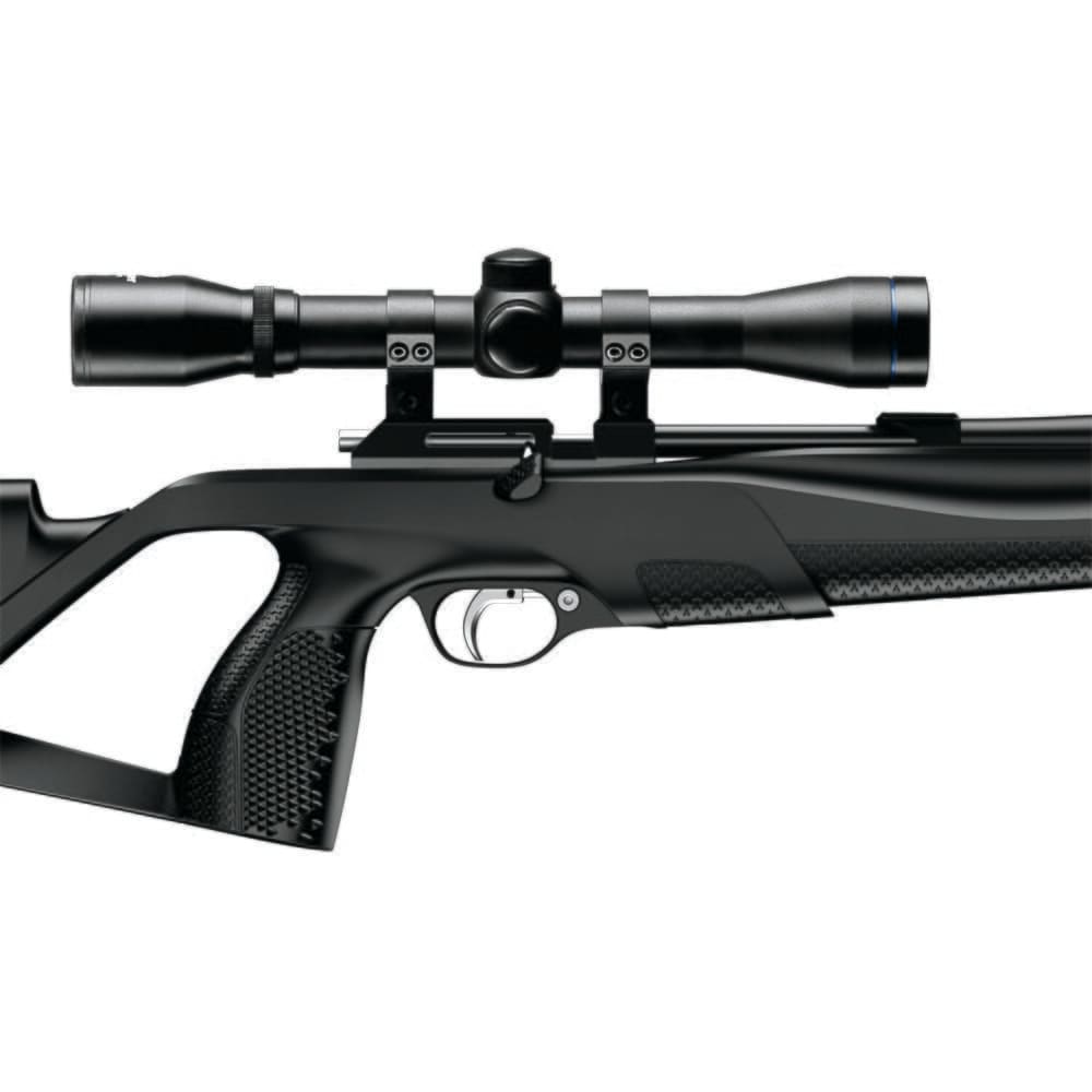 Stoeger’s devotion to excellence has let them to produce the XM1 air rifle. Unlike many air guns that use a break action or a manual pump action, this advanced pellet rifle utilizes an onboard pre-charged air reservoir. The XM1 can use either a single shot loader or a multi-shot rotary magazine (9 shots for .177, 7 shots for .22) with the pellets loaded into the chamber via straight-pull bolt action. This system of an air reservoir and smooth bolt action allows for multiple shots in rapid succession while retaining the same velocity. The XM1 also features an integral suppressor, making an already quite system even more silent.