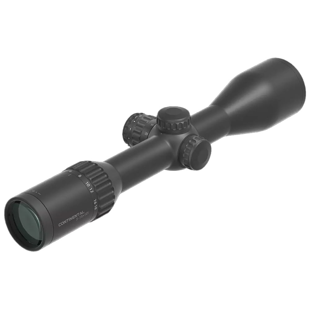 The Vector Optics Continental x6 3-18x50 Fiber Riflescope is a premium optic designed for precision shooting and hunting. Featuring a 30mm monotube and a 50mm objective lens, this riflescope delivers exceptional clarity and brightness with fully multi-coated lenses. The fiber reticle, illuminated for enhanced visibility, ensures accurate aiming in various lighting conditions. With a zero-stop feature and turret lock, this riflescope provides reliable performance and prevents unwanted adjustments. IP67 waterproof and nitrogen purged, it is built to withstand harsh environments, making it a dependable choice for any shooting scenario.