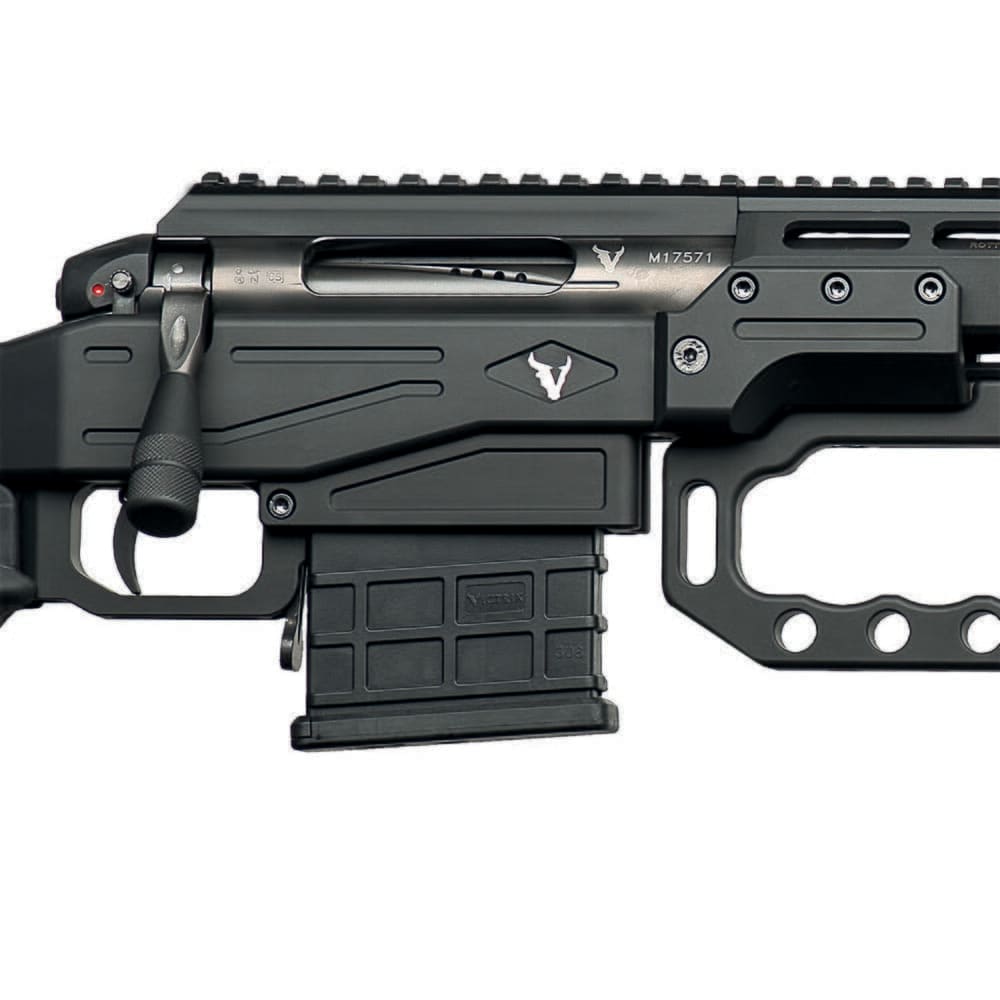 The Victrix Pugio Mille rifle is uniquely crafted by Victrix armaments with Military and Law Enforcement in mind. The Pugio is the most compact member of the Minerva Series with a foldable stock and 16" barrel. With the right case, the Pugio's size allows it to be transported inconspicuously when discretion is priority one. The cleverly designed, fully modular rifle chassis (FMRC) allows you to customize your rifle for a variety of applications. The chassis is also made of aluminum alloy and hard anodized to prevent scratching and abrasion. The Pugio is a rifle that celebrates precision and attention to detail.