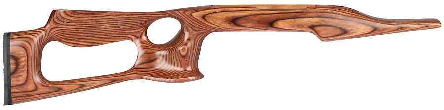 This brown, right-hand Volquartsen Laminated Lightweight Thumbhole 10/22 stock offers a high Monte Carlo comb and thumbhole to make shooting more comfortable. These stocks are hand-fit and CNC-machined.