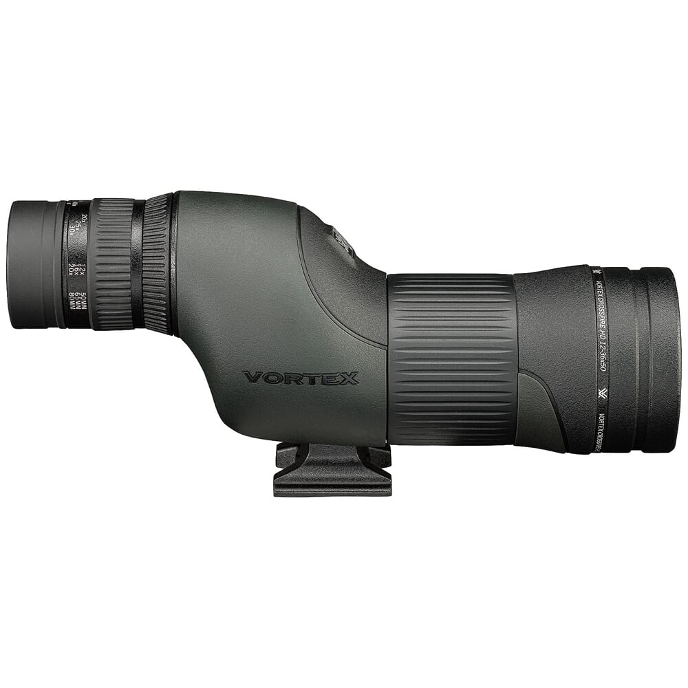 The Crossfire HD Spotting Scope series by Vortex Optics are an ideal choice for scouting in the field or calling shots at the range. It comes equipped with Vortex's renowned HD Optical System which utilizes select glass elements for excellent resolution, color fidelity, edge-to-edge sharpness, and enhanced light transmission while reducing chromatic aberration. The lenses are fully multicoated with anti-reflective coatings, as well as coatings to boost light transmission in low light environments. A wide field of view assists in target acquisition, and a helical focus allows users to make finer adjustments. Additionally, the Crossfire HD Spotting Scopes are ARCA-Swiss compatible for direct mounting to an ARCA-Swiss tripod head without the need for additional plates. Available in angled and straight configurations and multiple magnification ranges.