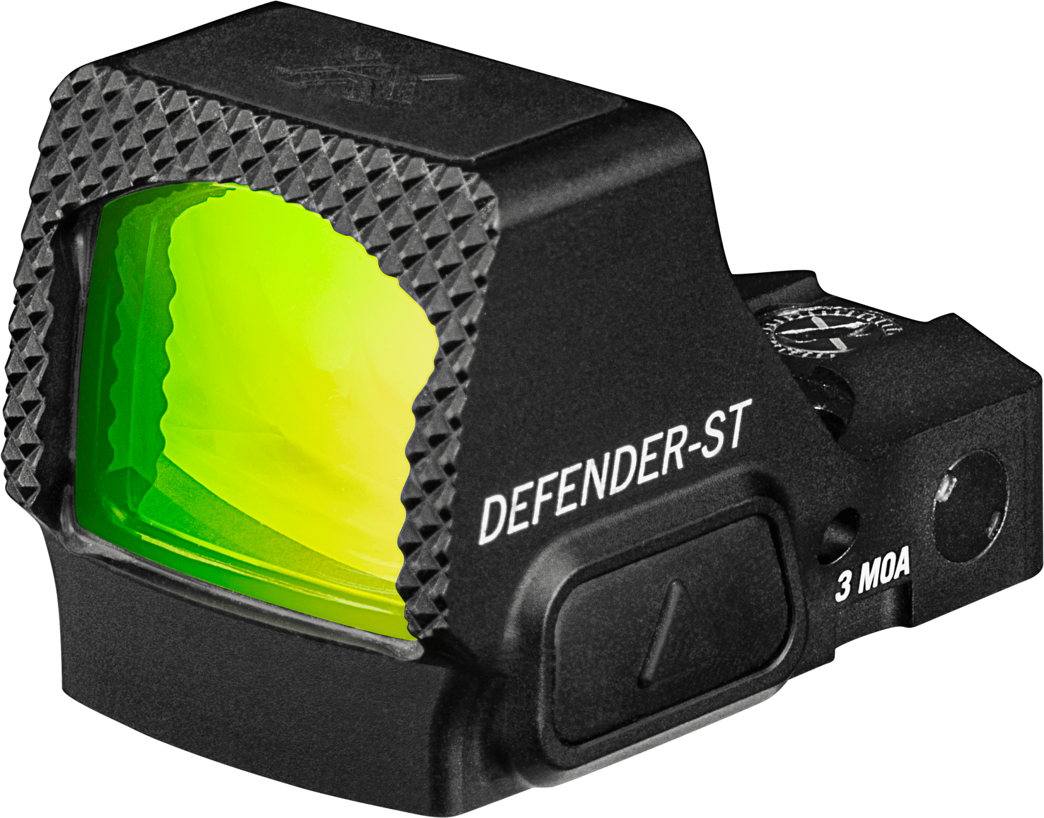 The Defender-ST Micro Red Dot Sight was built from the ground up as an ideal optic for everyday and concealed carry applications, and offers the performance and quality that all Vortex optics are known for. The massive aspherical window size is one of the largest in its class, ensuring a clean sight picture free of distortion. In terms of durability, the Defender-ST is outfitted with the exclusive ShockShield polymer insert which allows the optic to easily withstand everyday shocks, impacts, vibrations, and repeated recoil. The Defender-ST’s outstanding durability also extends to the innovative FastRack feature – this utilizes a knurled texture machined directly into the face of the optic, and allows the Defender-ST to be pressed against any surface to rack the slide of the host pistol. In addition, the Defender-ST utilizes a motion activation so its always at the ready, and an automatic shut off helps preserve battery life.