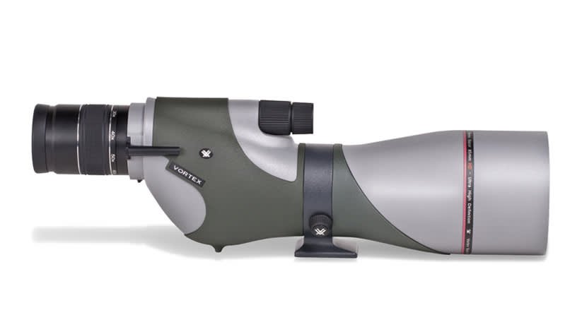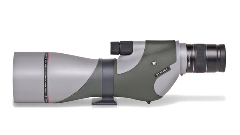 Simply one of the finest spotting scopes you can buy, the Razor HD spotting scope competes at the highest level of performance. The sophisticated triplet apochromatic lens system delivers high-definition views across the entire field of view-no color fringing, degradation of resolution or dilution of color fidelity at longer viewing distances. Includes green soft cordura case. If you’re keeping score, here’s a scope with a total that adds up to 110 percent fast!