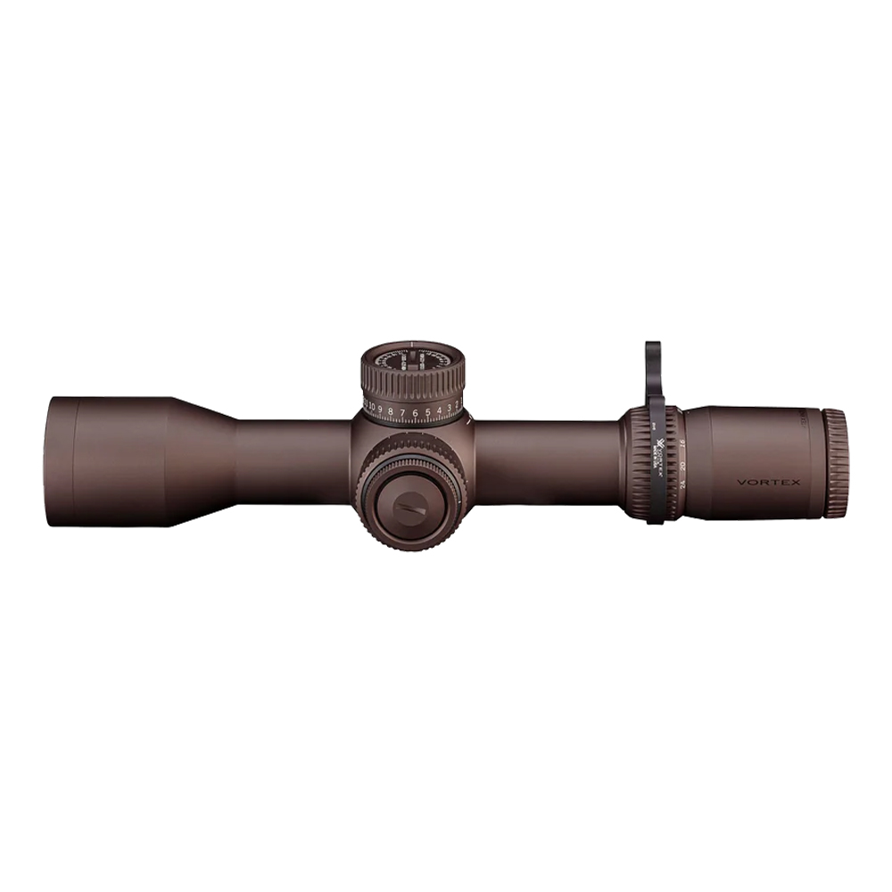 The Vortex Razor HD Gen III 4-24x44 FFP Riflescope is a high-performance tactical scope designed for precision shooting. It features a first focal plane (FFP) illuminated EBR-7D reticle, allowing accurate holdovers at any magnification. With a magnification range of 4x to 24x and a 44mm objective lens, it provides a versatile balance between field of view and long-range precision. The scope is built with a 34mm main tube, offering robust adjustment range and strength, and is finished in Vortex's durable Stealth Shadow hard-anodized matte coating. The turrets are exposed, locking, and feature a zero-stop, likely offering adjustments in 0.25 MOA or 0.1 MRAD increments, depending on the reticle version. The reticle is powered by a CR2032 battery, and most Razor Gen III models include the battery in the package. While some specific details such as minimum parallax distance and exact turret rotation per revolution are not confirmed for this model, its construction and feature set align closely with the rest of the Razor HD Gen III family—known for exceptional clarity, rugged design, and reliable long-range performance.