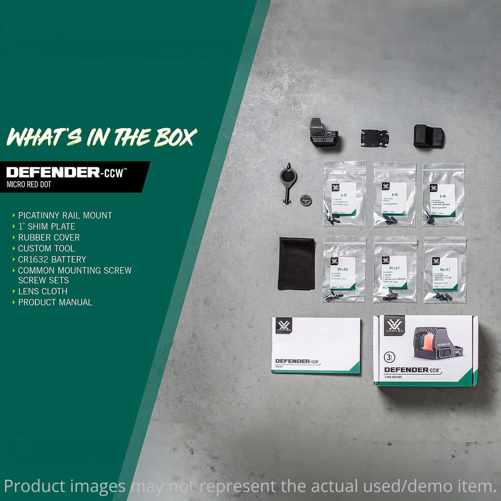 The Defender-CCW Micro Red Dot Sight was built from the ground up as an ideal optic for everyday and concealed carry applications, and offers the performance and quality that all Vortex optics are known for. When compared to Vortex’s Viper MDRS and Venom MDRS, the Defender-CCW offers a smaller overall profile, yet a larger window size, and is significantly more durable than both. The small size of the Defender-CCW greatly reduces the risk of snagging on loose clothing or equipment during the draw, while also reducing the chance of printing to maintain discreteness while concealed carrying. The massive window size is the largest in its class, ensuring a clean sight picture free of distortion. In terms of durability, the Defender-CCW is outfitted with the exclusive ShockShield polymer insert which allows the optic to easily withstand everyday shocks, impacts, vibrations, and repeated recoil. The Defender-CCW’s outstanding durability also extends to the innovative FastRack feature – this utilizes a knurled texture machined directly into the face of the optic, and allows the Defender-CCW to be pressed against any surface to rack the slide of the host pistol. In addition, the Defender-CCW utilizes a motion activation so its always at the ready, and an automatic shut off helps preserve battery life.