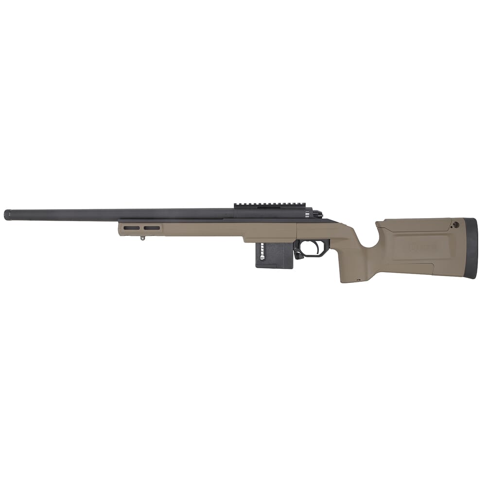 At the heart of the Apparition is the Vudoo exclusive V-22 360 Rimfire Repeater Action, which features a 3-lug configuration with a 60° bolt throw. This action utilizes a unique control-round-feed protocol, meaning the bolt has full capture control of the cartridge from the time it leaves the magazine until it ejects the spent casing. This results in superior reliability, but perhaps more importantly the cartridge never touches anything on its entrance to the bore. This improves accuracy, as it keeps the soft lead projectile from damage during the chambering process.