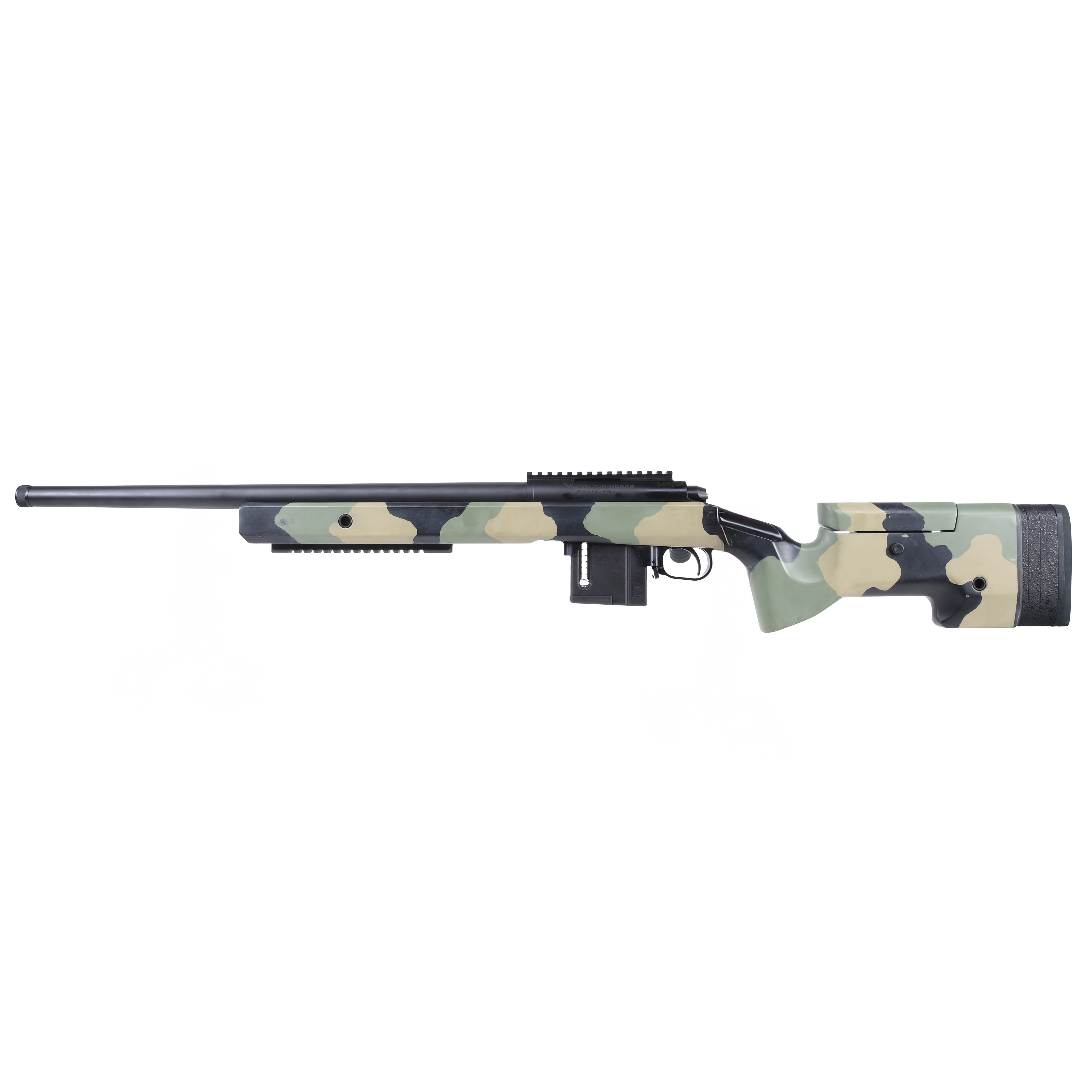 The Vudoo Gun Works Gen2 McMillan U‑1 is a precision bolt‑action rifle built on Vudoo’s Gen2 short‑action platform. It pairs a 22" Bartlein MTU contour barrel with a 1/2‑28 threaded muzzle and an integral 20‑MOA optic rail for long‑range optics. The rifle is fitted with an adjustable McMillan U‑1 stock in V‑CAM finish, feeds from M5 detachable box magazines, and uses a Timney Trigger - 510 v2 Elite Hunter thin curved‑shoe trigger for a crisp, repeatable break. Designed as an optics‑first, tunable platform, this build is intended for long‑range hunting and precision shooting; final chambering, twist rate, weight and some accessories depend on the factory configuration.