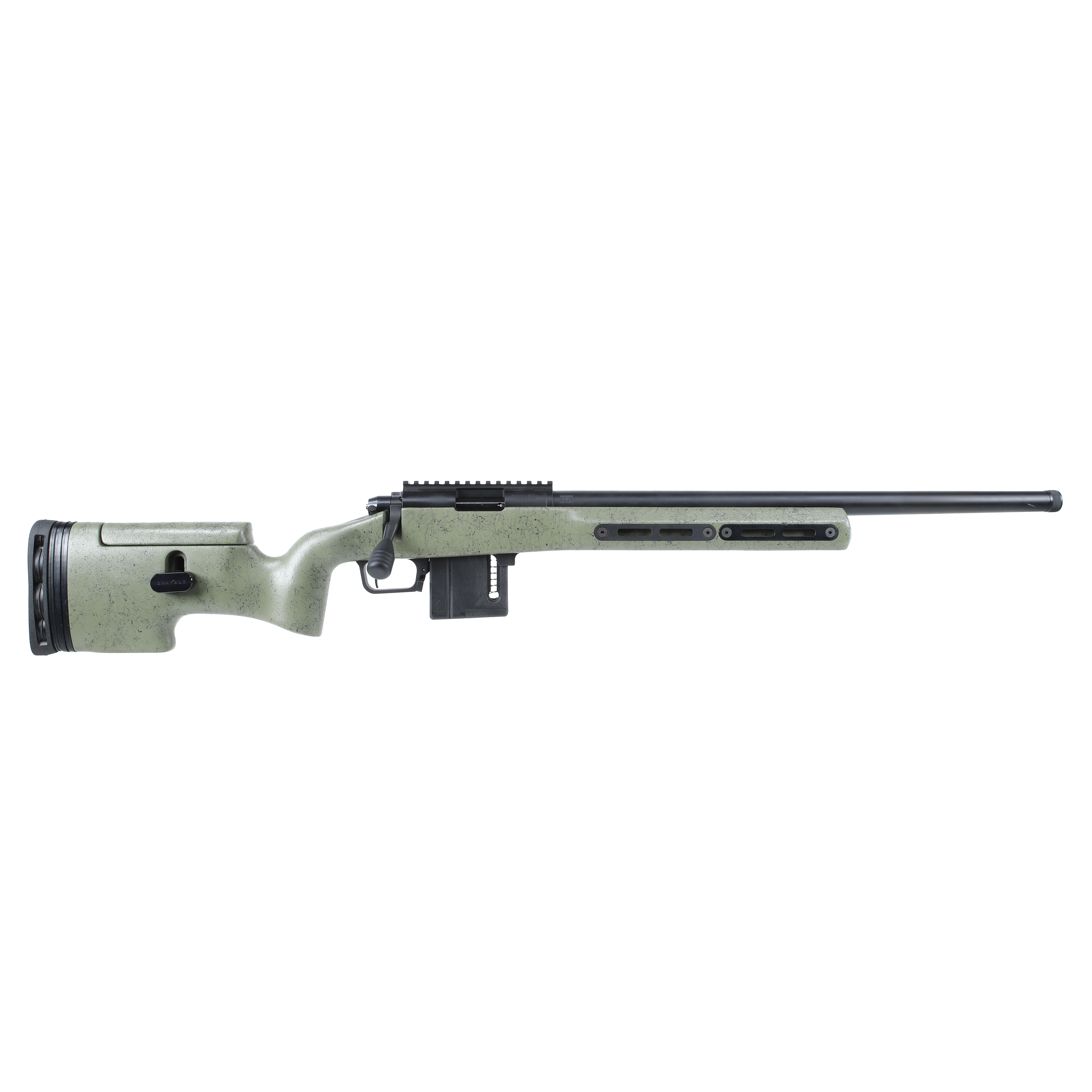 The Vudoo Gun Works Gen2 Ridgeback is a precision rimfire rifle built on the Remington 700 short-action footprint. It features a 22" Bartlein MTU barrel with a 1/2-28 threaded muzzle, housed in a robust Ridgeback-style M-LOK chassis with an Olive with Black Web (OBW) finish. An integrated 20 MOA optic rail offers ideal elevation for long-range shooting. The rifle is equipped with a Timney 532 Elite 2 Stage Curved Trigger for a consistent, clean break. Designed for serious competitors and precision shooters, this platform mimics full-size centerfire rifles in form and feel, making it ideal for both training and match use.