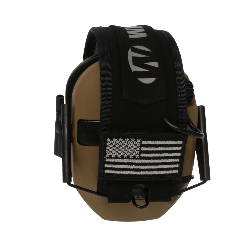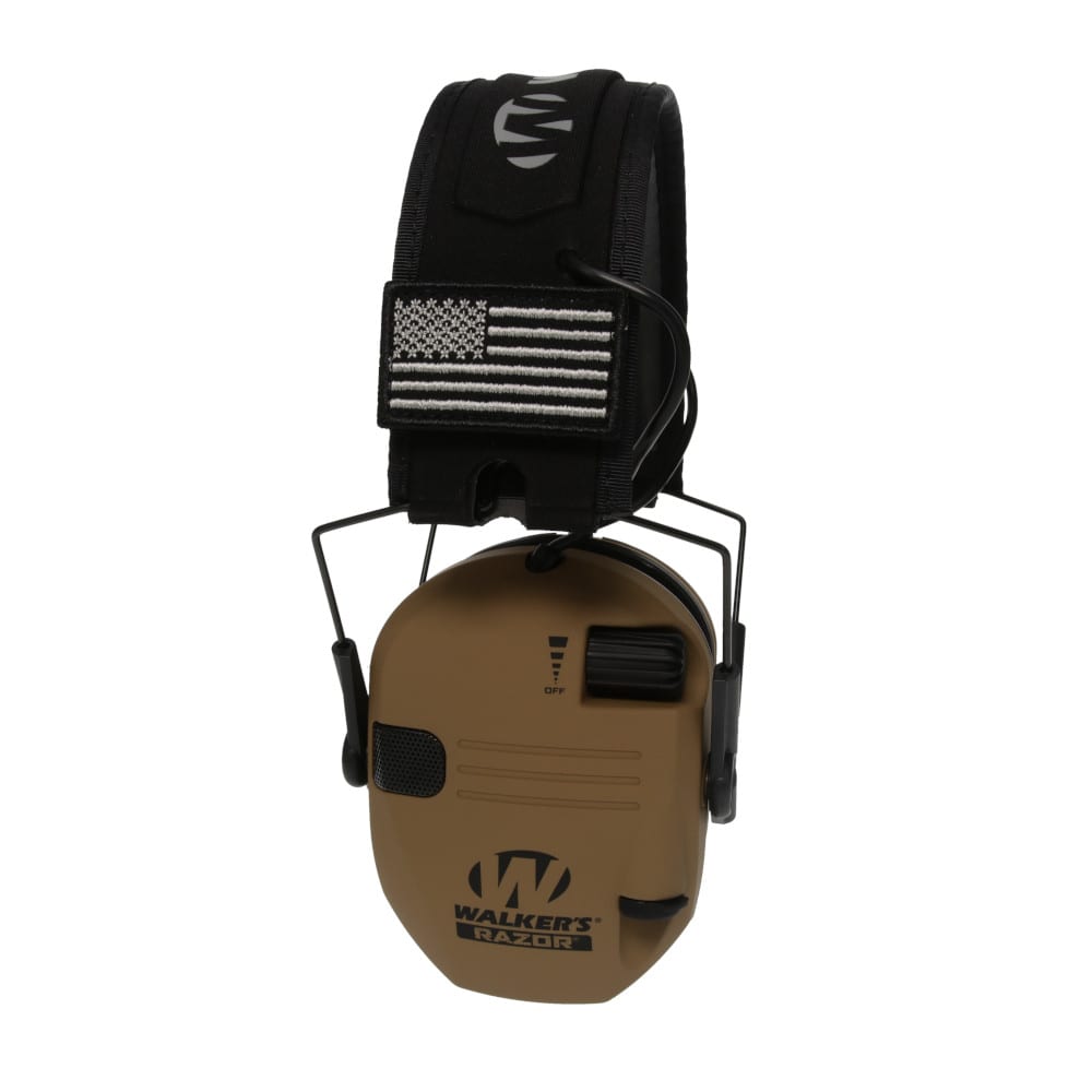 The Walkers Razor Patriot Series Battle Brown electronic ear muffs give you dependable hearing protection and ambient sound awareness in a rugged yet compact build that works well for shooting, hunting, or noisy work environments. Two high‑gain omnidirectional microphones pick up surrounding sounds such as voices, footsteps, or environmental noise, and full‑range HD speakers reproduce them clearly so you stay aware of what is happening around you. A fast acting sound activated compression system reduces sudden loud noises like gunshots to safe levels while still allowing softer ambient sounds through. The ear cups are low profile and rubber coated for durability and comfort, and the headband uses a metal frame for a secure fit. The muffs run on two included AAA batteries and come with two U.S. flag patches for a patriotic touch, making them a ready to wear solution for users who want protection, awareness, and a classic Battle Brown finish.