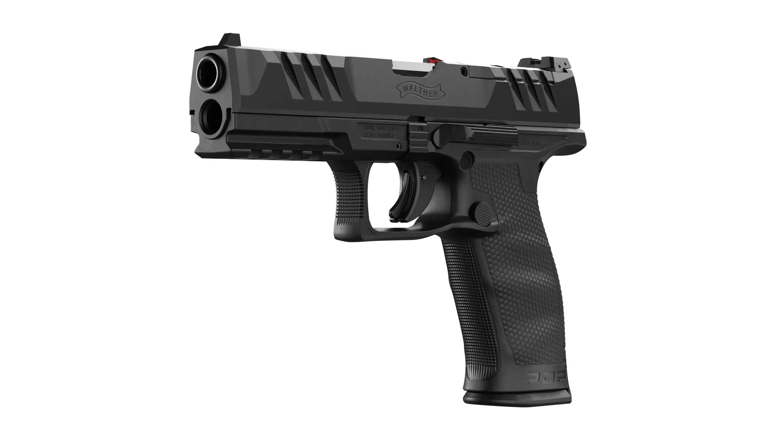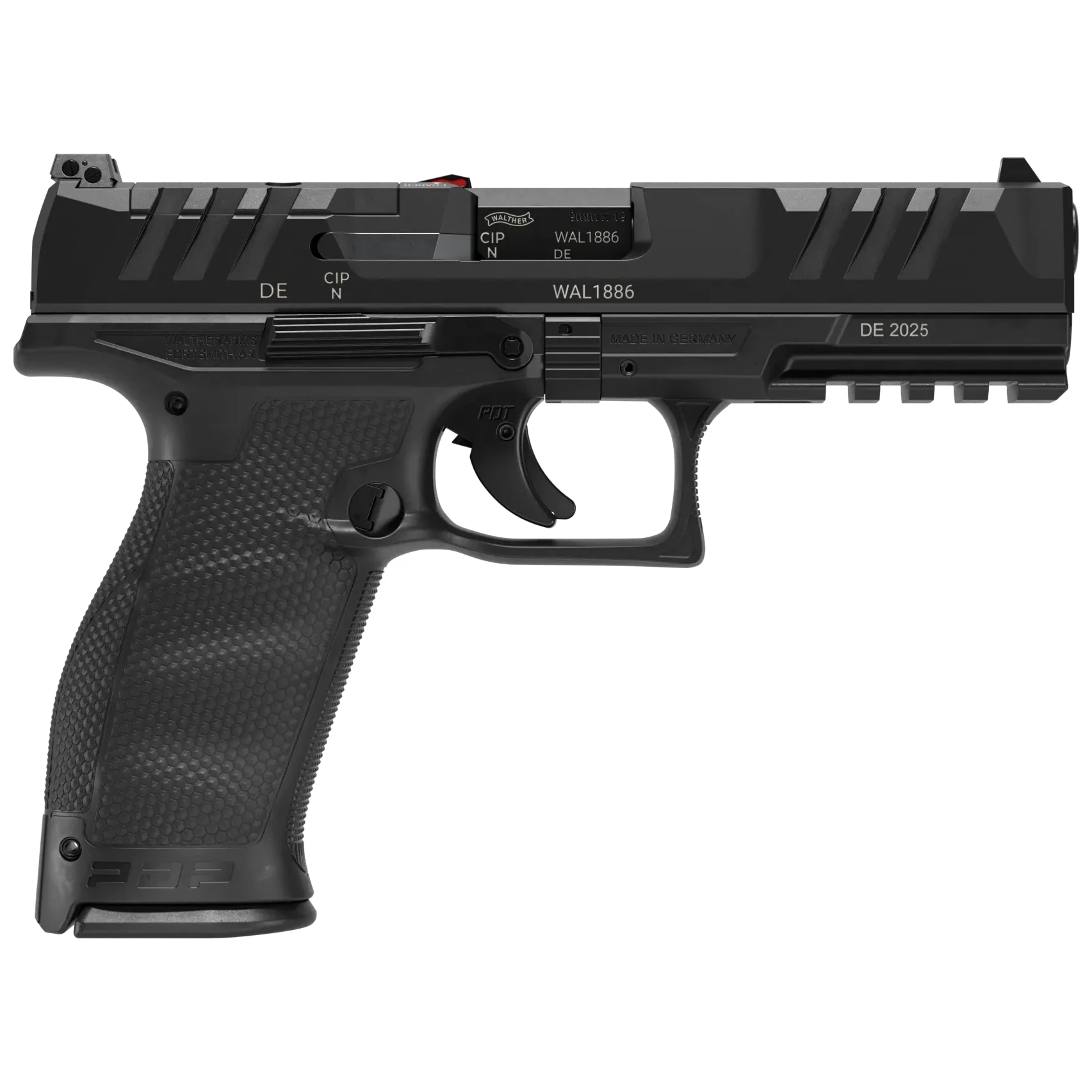 The Walther PDP Full Size California Compliant 9mm 4.5" 10‑Round Pistol is a duty‑grade striker‑fired handgun engineered to provide modern performance, ergonomics, and reliability while meeting California’s compliance requirements. Built on a full‑size polymer frame with a durable matte black finish, it features a 4.5" barrel that balances controllability and sight radius for both defensive and range use. The PDP’s SuperTerrain slide serrations and textured grip enhance positive manipulation in all conditions, while the Performance Duty Trigger delivers a predictable, tactile break for confident follow‑up shots. Designed with safety in mind, this California‑compliant version includes a loaded chamber indicator and a magazine disconnect to meet state regulations. Optics‑ready slide cuts allow easy installation of a red dot sight with an adapter plate (sold separately), making it versatile for a variety of modern setups. Capable of accepting 10‑round magazines and backed by Walther’s long‑standing engineering, the PDP offers a refined balance of performance and practicality for shooters seeking a reliable 9mm pistol.