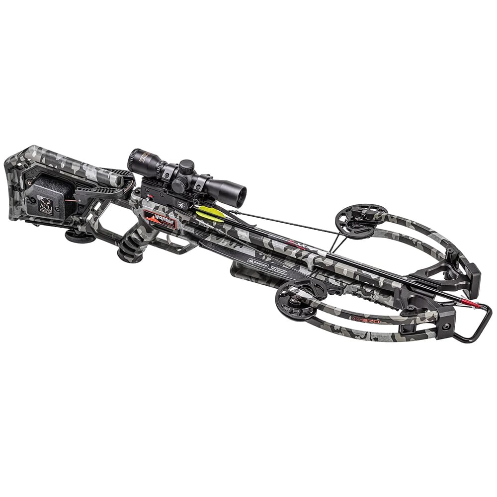 The M-370 Crossbow by Wicked Ridge provides high speed and accuracy in a lightweight, 5.8-pound package. This crossbow comes equipped with the ACUdraw cocking device, which reduces the draw weight to a mere 5 lbs. In addition, the M-370 is pre-sighted at 20 yards and can launch arrows at a blistering 370 feet per second.