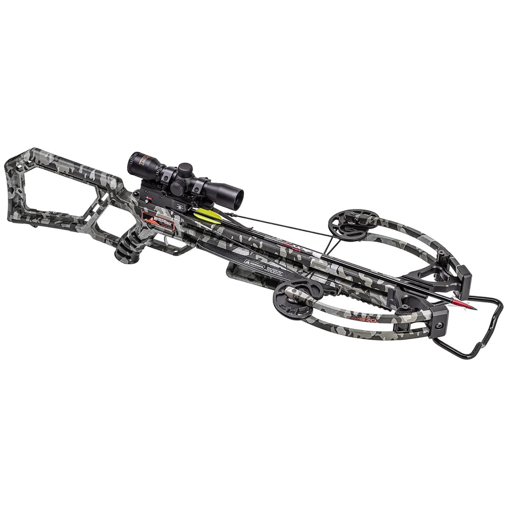 The M-370 Crossbow by Wicked Ridge provides high speed and accuracy in a lightweight, 5.8-pound package. This crossbow comes equipped with the Rope-Sled cocking device, which greatly reduces the draw weight. In addition, the M-370 is pre-sighted at 20 yards and can launch arrows at a blistering 370 feet per second.