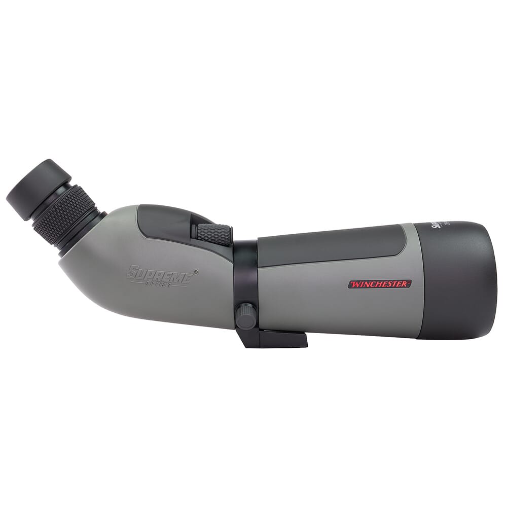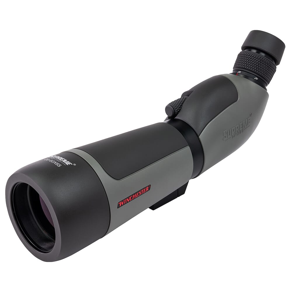 Winchester Supreme Spotting Scopes incorporate brilliant fully multicoated glass that transmits intense colors and crisp detail, even in low light conditions. Color-saturated images with razor-sharp contrast and clarity that make the smallest details come to life. A smooth focus dial allows precise adjustments to define fur, feathers or antlers at extreme distances, and a large magnification range means your 100% waterproof spotter is perfect for all your outdoor adventures. A rotating collar positions the scope for maximum comfort and utility on the bench or in the field. Light weight and ergonomic, your Winchester Supreme spotting scope comes with a bench top tripod and a quality protective case designed for field use and carry.