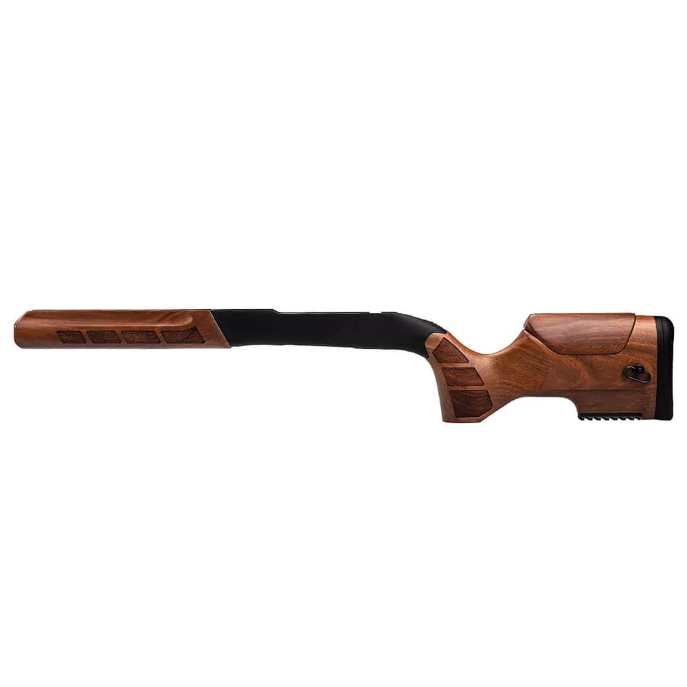 Made for precision shooters, the Woox Exactus stock is created from a forged monoblock body. The chassis is made up from high quality hardwood and hard-anodized aluminum. This process improves overall strength and durability of the stock. The skeleton is paired with high-quality front and rear stocks, which are adjustable and customizable. Completing the Exactus chassis is vibration-reducing hardwood grips. These features, combined with it’s sleek design, the Exactus Stock is ideal for upgrading Remington 700, Tikka T3/T3X, or Sauer 100 hunting rifles. The WOOX Exactus Stock is a masterpiece of unique design and performance that allows the user to get the most out of their rifle without sacrificing aesthetics.