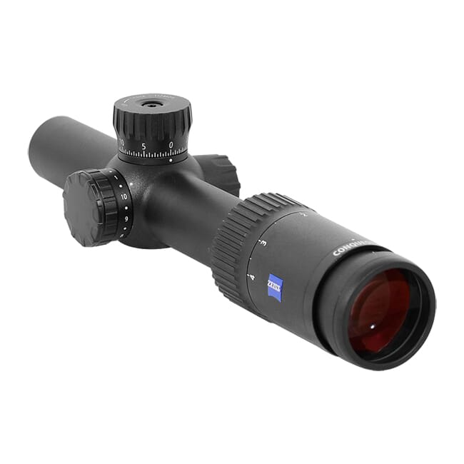 Lightweight and versatile, the Zeiss Conquest V4 1-4x24 with ZQAR #62 Reticle is a great riflescope at an incredible price point. The scope is ideal for driven hunts, dense brush hunting, or any scenario where fast target acquisition is paramount. Like all riflescopes within the Conquest V4 family, the V4 1-4x24 is built on a 30mm maintube and produces 90% to-the-eye light transmission thanks to its T* and LotuTec lens coatings.