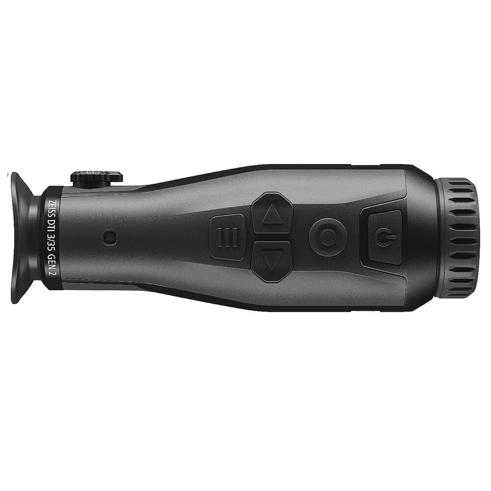 The Zeiss DTI (Digital Thermal Imaging) Camera 3/35 delivers premium thermal imaging capabilities and a plethora of additional features. It comes equipped with an advanced 384x288 thermal sensor and a high performance 35mm objective lens – together, these features allow the DTI 3/35 to detect heat signatures from an impressive 1421 yards away. These heat signatures are projected onto a 1024x768 AMOLED display with pristine clarity and sharp details, giving the user unparalleled detection and recognition abilities. The DTI 3/35’s thermal imaging abilities are further enhanced by wide range of secondary modes and features. These include the newly designed color modes, which greatly mitigate the harsh blinding effect of staring into the screen in a dark environment. The detection mode highlights heat signatures to a higher degree while also reducing the cold background – this makes it easer to spot animals that are behind brush and vegetation. Fog mode is designed to increase user visibility in humid environments, which would otherwise block the transmission of thermal radiation. The DTI 3/35’s movement alert function recognizes the movement of the hottest east source in the field of view and gives the user an alert signal via an LED in the display. Furthermore, the smart standby mode uses angle activation to automatically switch on the device when the DTI 3/35 is brought to the user’s eye to greatly improve battery life.